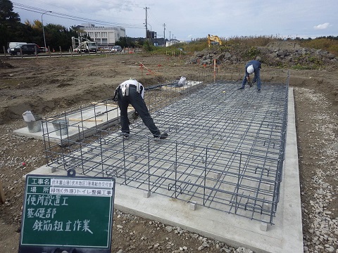 今週は便所本体の基礎及び目隠し壁の基礎の鉄筋組立作業を行いました。本日(1…